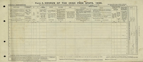 On Sunday 18th April 1926 the first Census of Population to take place following independence, and the establishment of the Irish Free State, was conducted. To make the detail of this 1926 Census available to the public one hundred years later, this weekend the National Archives will be releasing the digitised returns from that Census, with the completed forms will be available and searchable online. There is more information about this here and a very interesting short video on the process of digitisation here.