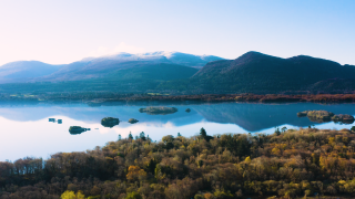 ![Drone shot of the mouth of the River Corrib in Galway.]()